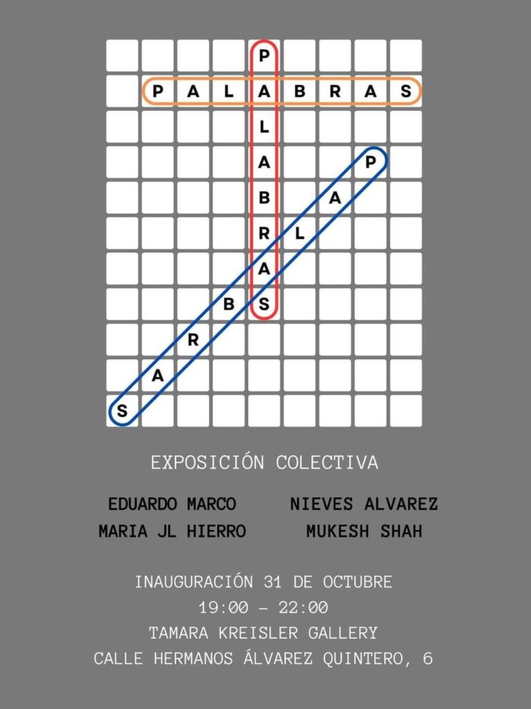 En estos dos últimos años, Nieves Álvarez ha realizado tres exposiciones en Cantabria: La Vidriera de Camargo (mayo de 2022), Sala Bretón de Astillero (diciembre de 2022 y enero de 2023), CN-Foto de Torrelavega (agosto del 2023). Y ahora, el próximo martes, día 31 de este mes de octubre, a las 19.30 horas, se inaugura la exposición PALABRAS, PALABRAS, PALABRAS, de la TAMARA KREISLER GALLERY, en Madrid.